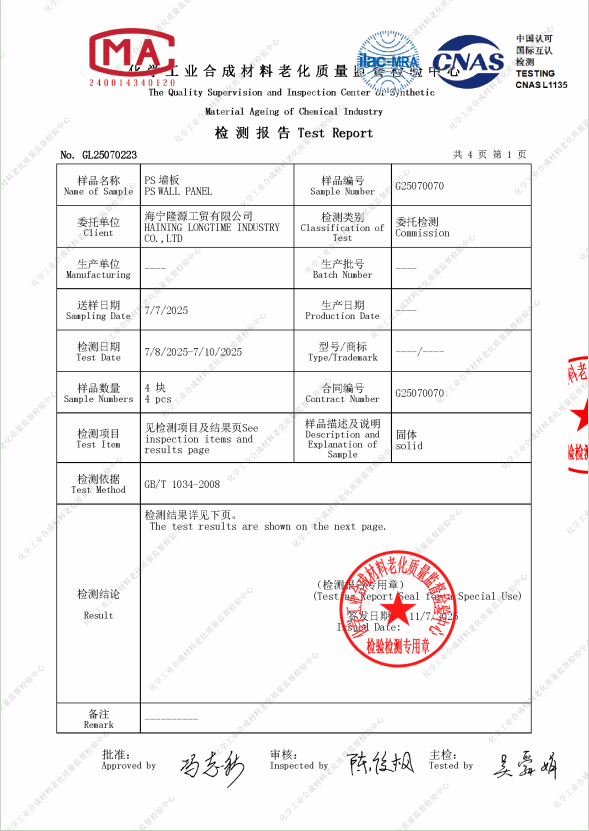 Normal indoor use — no yellowing for 5 years (ΔE < 2). No aging for 10 years. When you finally want to renovate again, I might still be perfectly intact