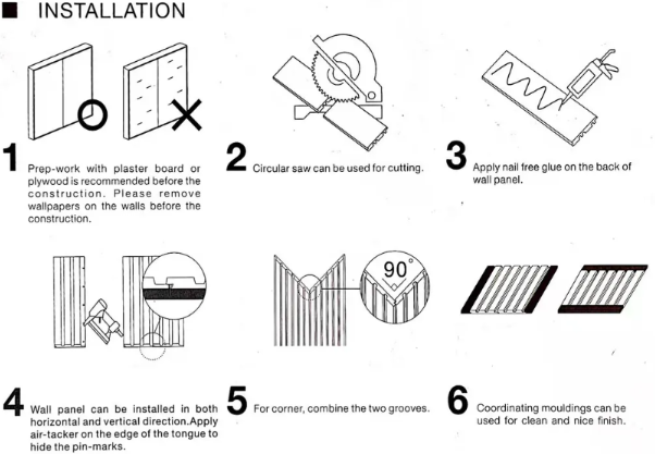 - PS wall panel: Lightweight, can be nailed or glued directly onto bare or old walls – no leveling required. Two people can install 100㎡ in one day.