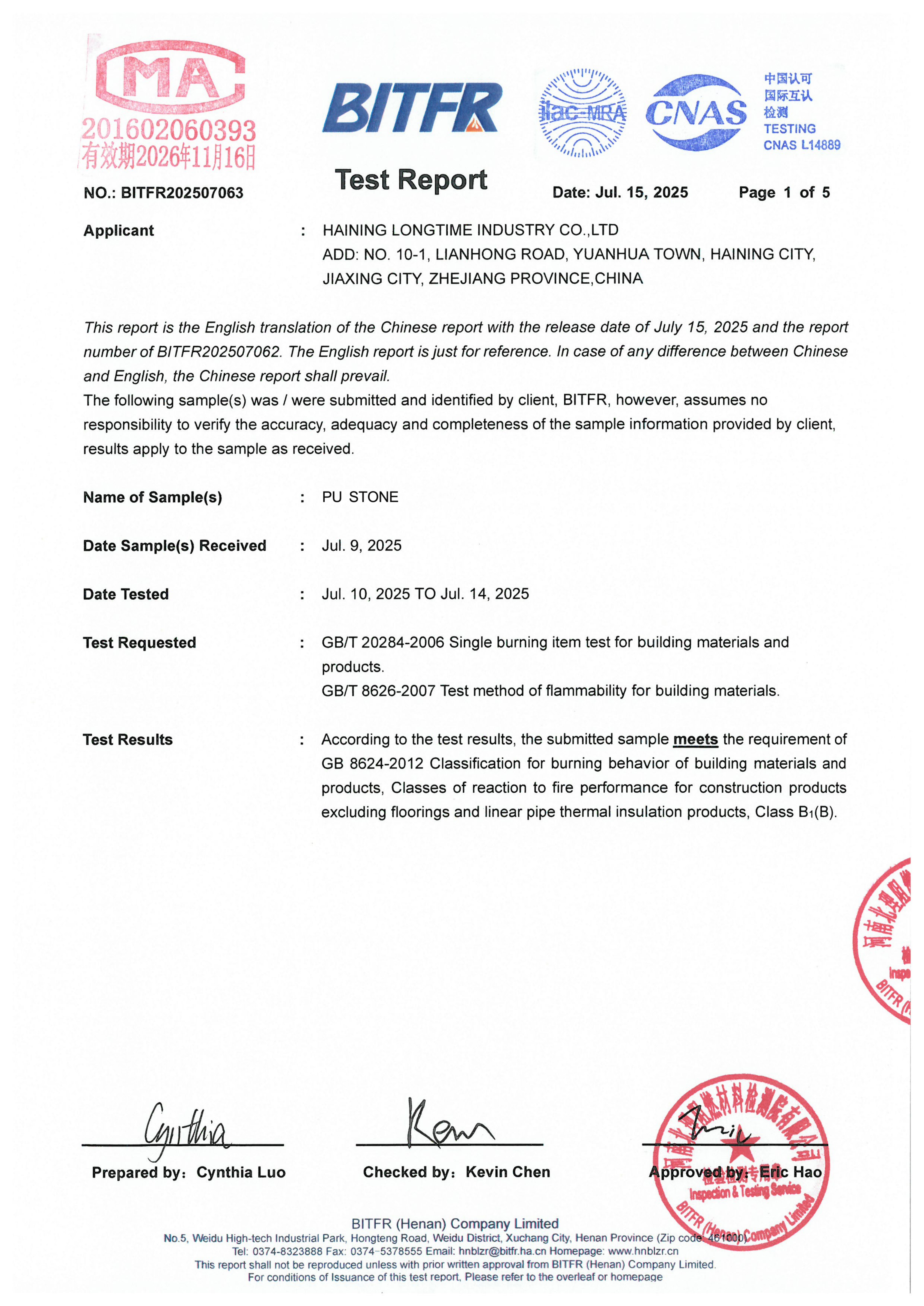 B1 (difficult to ignite) |