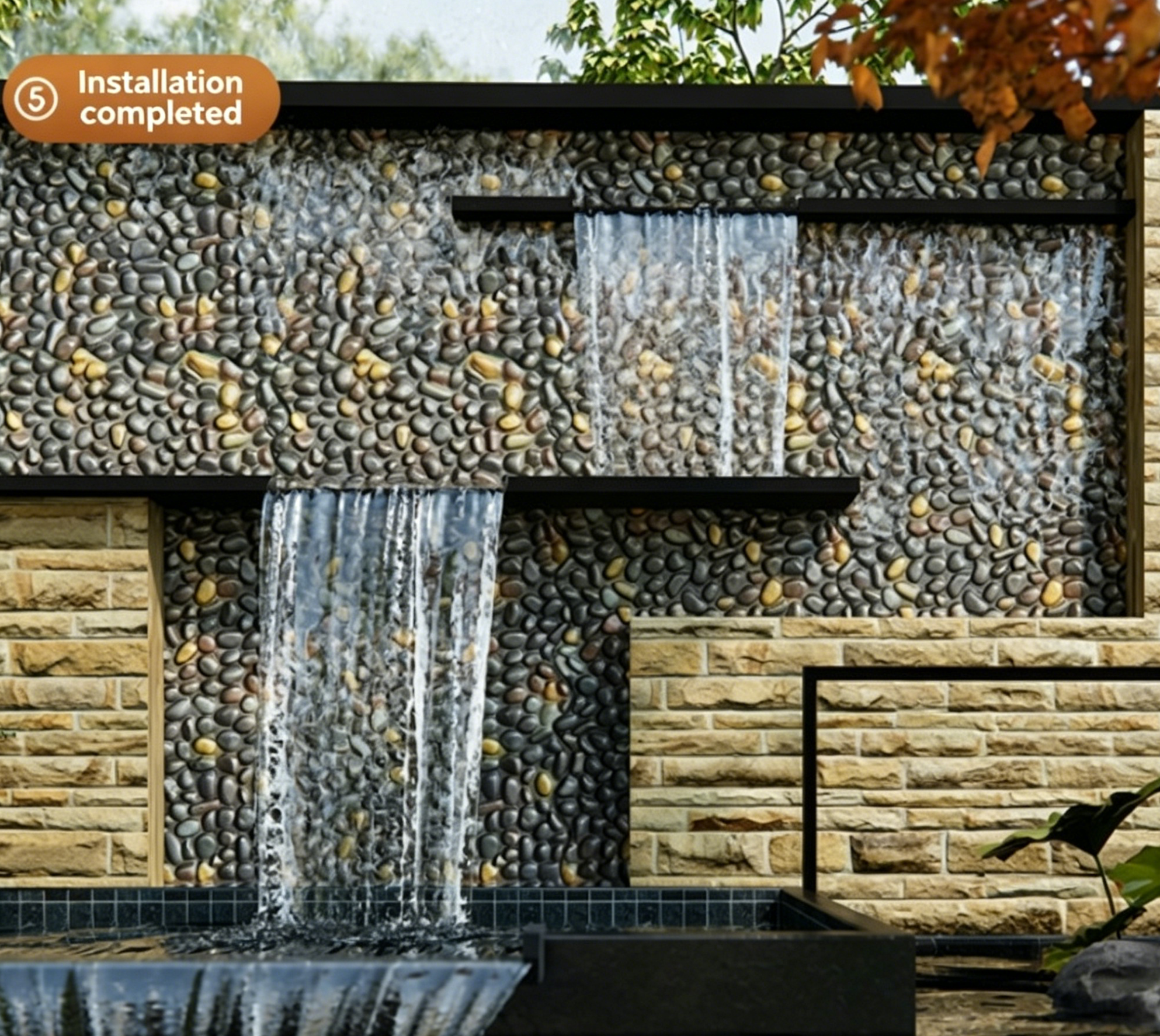 Feature walls in restaurants, homestays, and SPA clubs, creating a streamside or Japanese landscape atmosphere. |