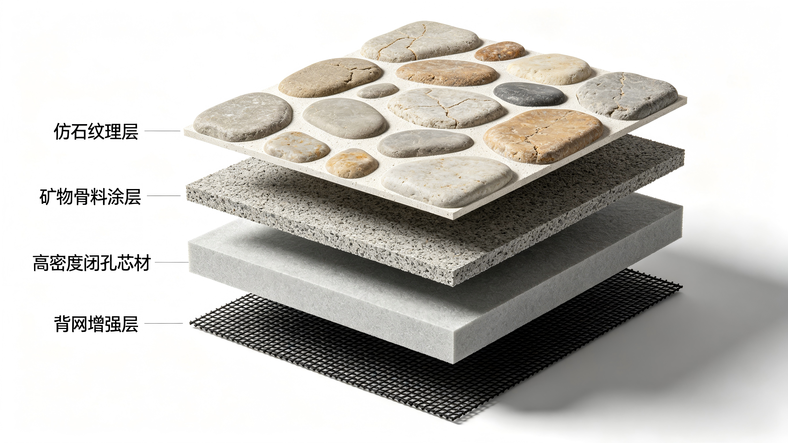 River Rock stone panels adopt a multi-layer composite structure, with each layer serving a specific function:
