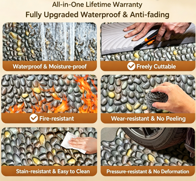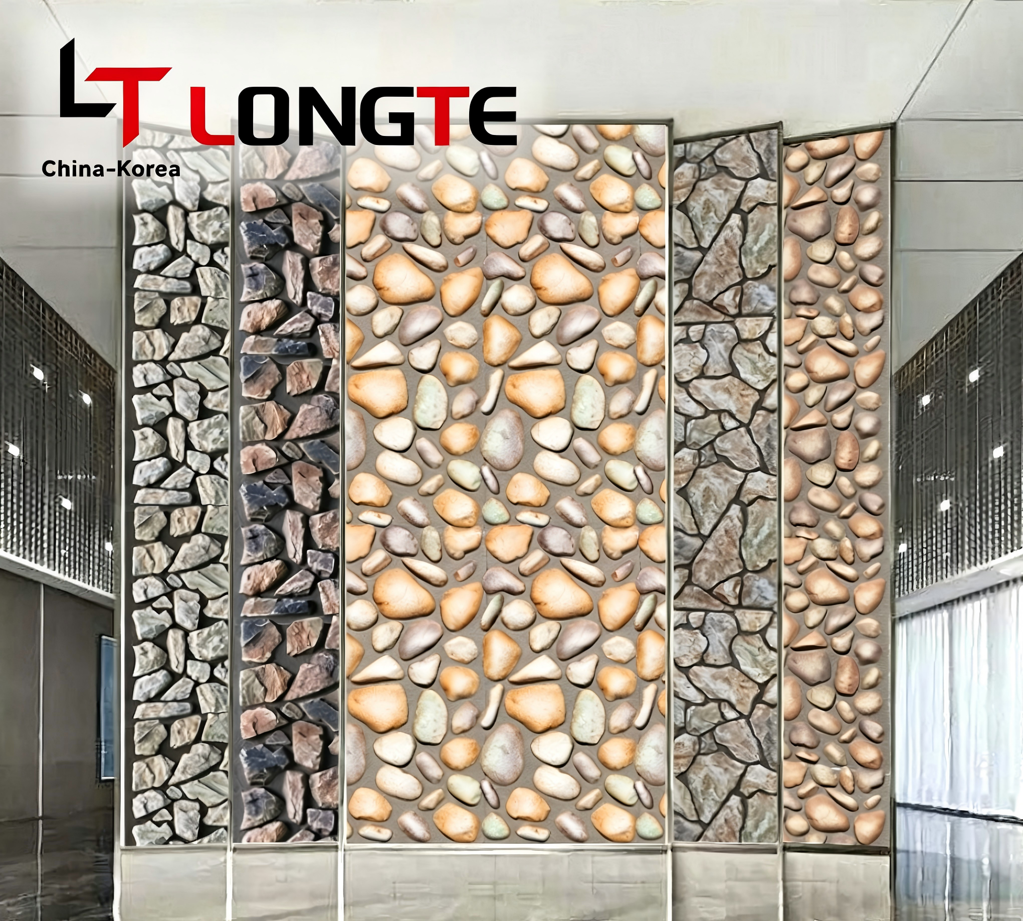 River Rock Stone Panels are large-format prefabricated panels that replicate the shape, texture, and feel of natural pebbles using polyurethane (PU) or composite materials. Each panel is pre-formed with multiple irregularly sized and arranged simulated river rocks, with the mortar effect between the stones also integrally formed. The product is designed to replace the traditional manual river stone wall masonry process, providing a lightweight, quick-installation, and uniform-effect wall decoration solution.